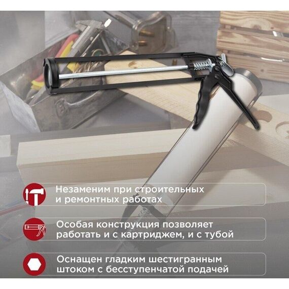 Ручной инструмент REXANT (12-7201) Пистолет для герметика, 310 мл, скелетный , с фиксатором, шестигранный шток 7 мм