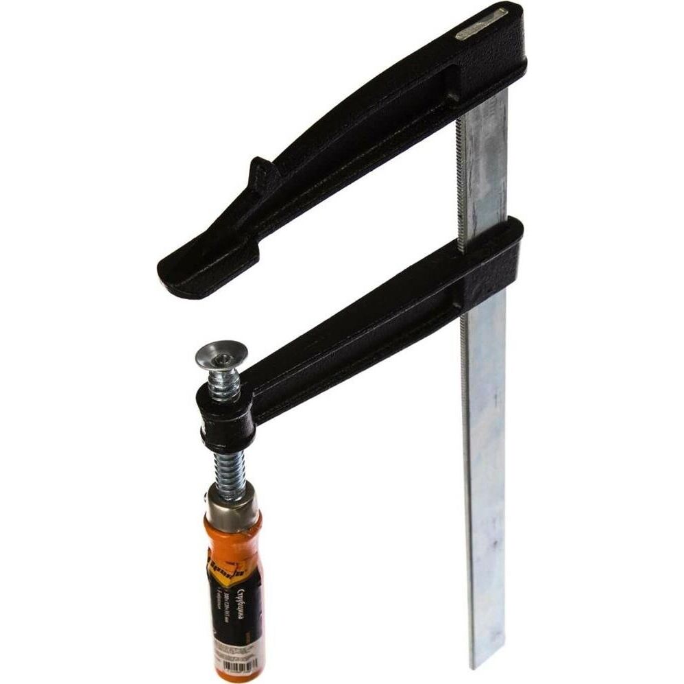 Предназначена для фиксации деталей при обработке и сборке. Один из кронштейнов установлен на направляющей жестко, другой перемещается для регулировки захвата и оснащен винтовым зажимом. Губки снабжены накладками для защиты обрабатываемых предметов от повреждений. Рукоятка деревянная.