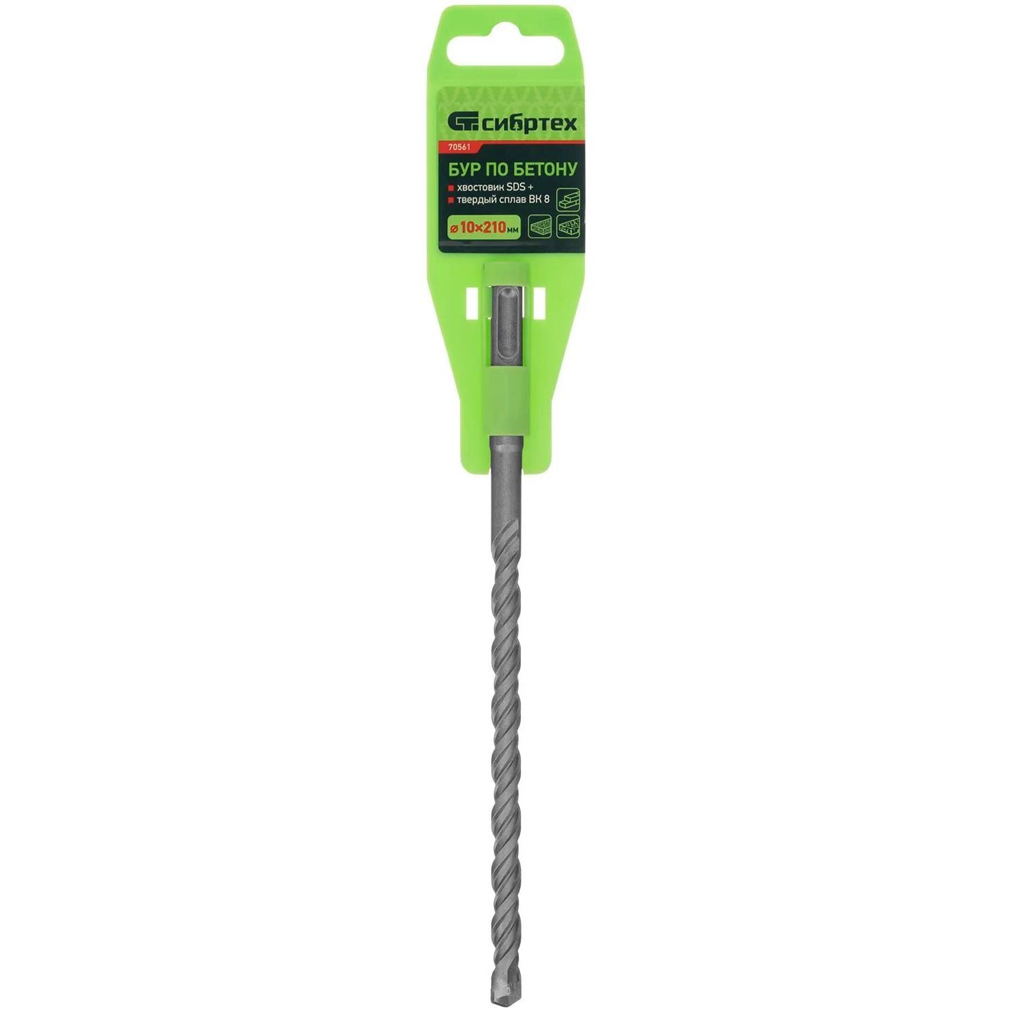 Бур по бетону Сибртех 70561 размером 10 х 210 мм предназначен для перфораторов с хвостовиком типа SDS Plus.
