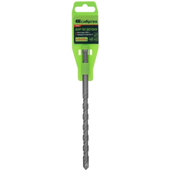 Бур по бетону Сибртех 70562 размером 12 х 210 мм предназначен для перфораторов с хвостовиком типа SDS Plus.