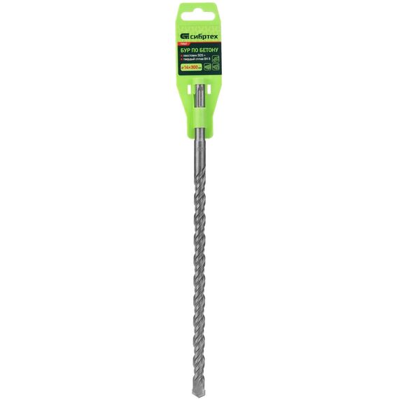 Бур по бетону Сибртех 70567 размером 14 х 300 мм предназначен для перфораторов с хвостовиком типа SDS Plus.