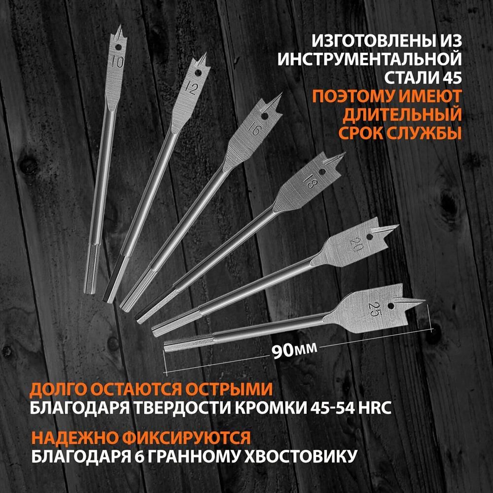 Количество предметов 6. Максимальный диаметр, мм 25. Марка стали 45. Материал обработки дерево. Минимальный диаметр, мм 10. Страна производства Китай. Тип хвостовика шестигранный.