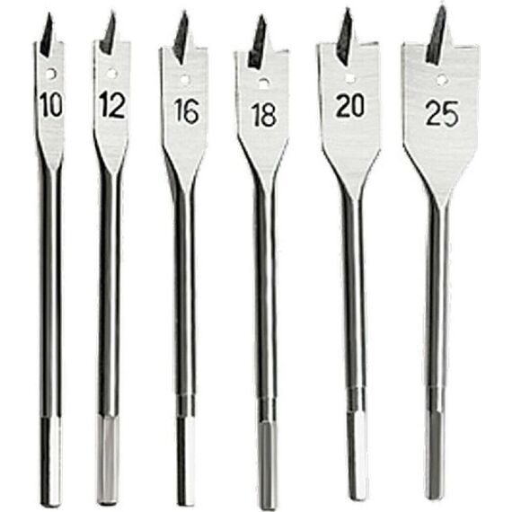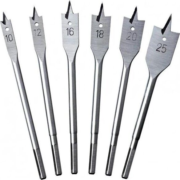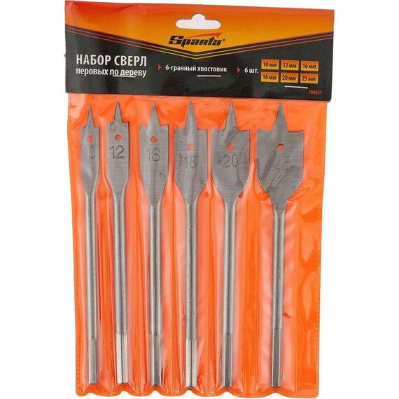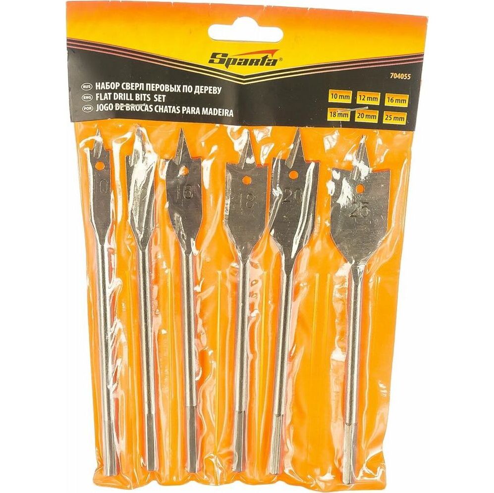Набор сверл SPARTA Набор сверл перовых по дереву, 10-12-16-18-20-25 мм, 6 шт, шестигранный хвостовик 704055
