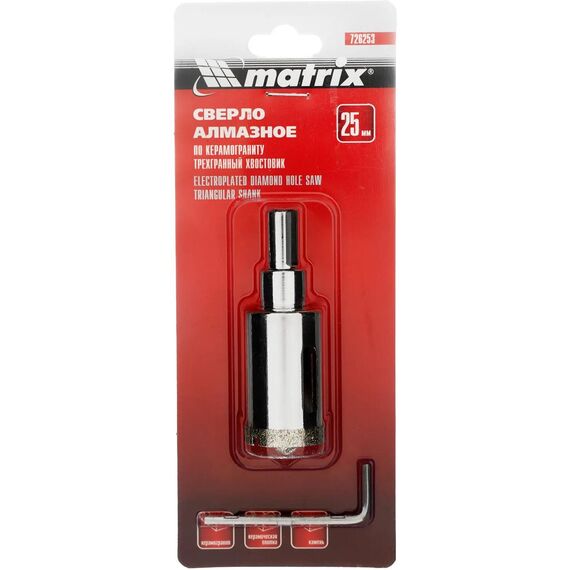 MATRIX Сверло алмазное по керамограниту, 35 х 67 мм, 3-гранный хвостовик