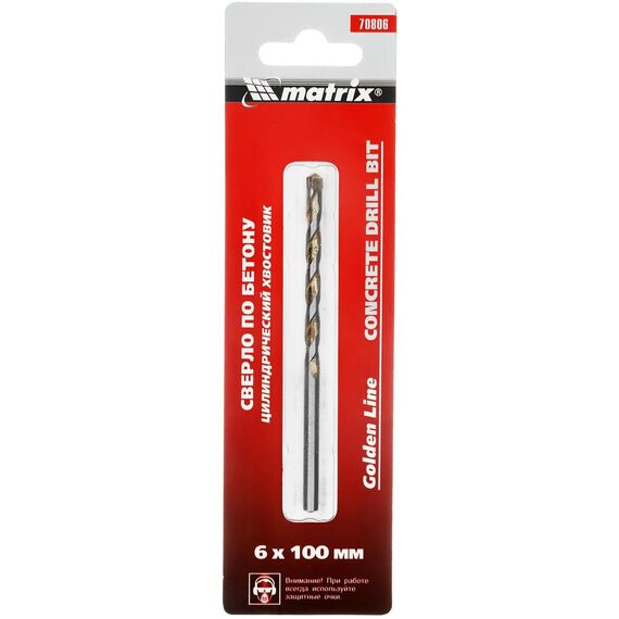 MATRIX Сверло по бетону Golden Line, 6 х 100 мм цилиндрический хвостовик