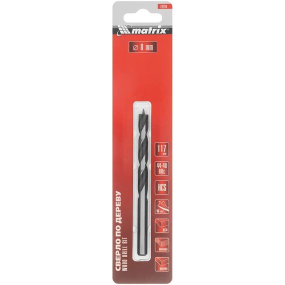 MATRIX Сверло по дереву, 8 х 117 мм, цилиндрический хвостовик