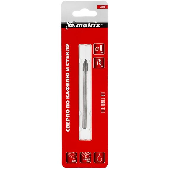MATRIX Сверло по керамической плитке и стеклу, 6 мм, цилиндрический хвостовик