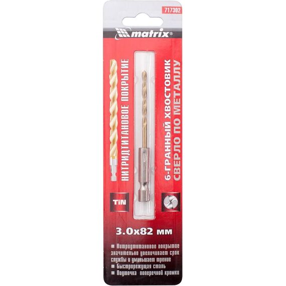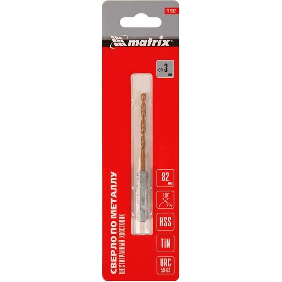 MATRIX Сверло по металлу, 3 мм, HSS, нитридтитановое покрытие, шестигранный хвостовик