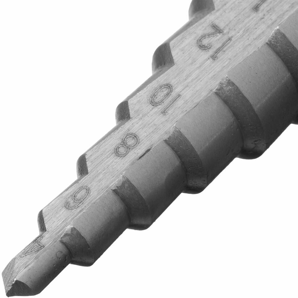 Ступенчатое сверло Сибртех 723012 предназначено для сверления отверстий диаметром от 4 до 20 мм в сталях, цветных металлах и пластике. Избавляет от необходимости иметь при себе целый набор традиционных сверл. Позволяет получать отверстия с ровными краями и уже снятой фаской под гайку или болт. Сверло пригодится дома и в мастерской.