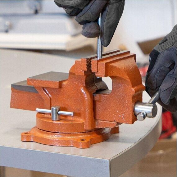Предназначены для фиксации деталей в положении, удобном для их обработки. Нерабочие поверхности тисков окрашены, съемные губки выполнены рельефно, есть наковальня для проведения ударных слесарных операций. Тиски можно повернуть относительно основания, выбирая наиболее удобное положение, и закрепить. Тип слесарные. Рабочий ход 75 мм. Ширина губок 100 мм. Особенности функция поворота.