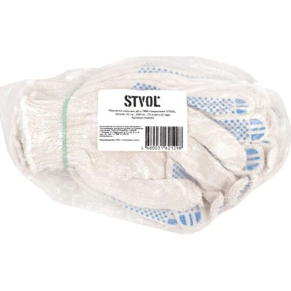 Перчатки рабочие STVOL SWG01 Перчатки рабочие ХБ с ПВХ покрытием, белые, 42 гр., 150 пл., 7,5 класс 5 пар