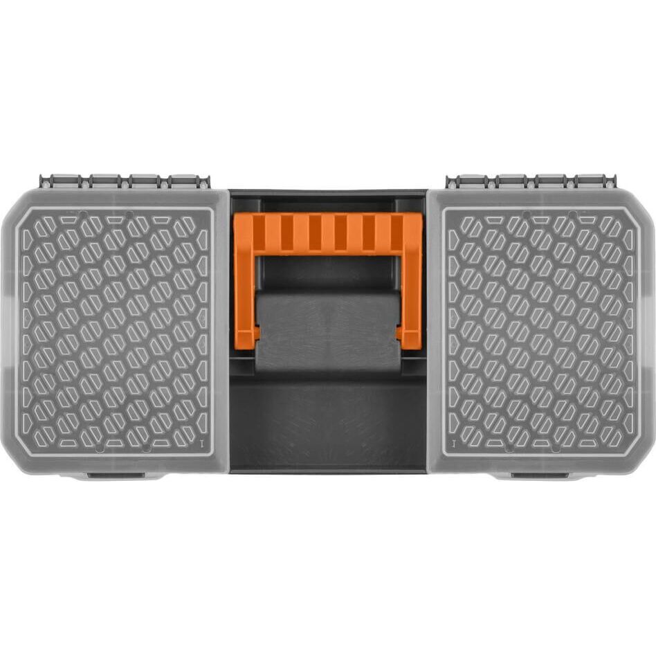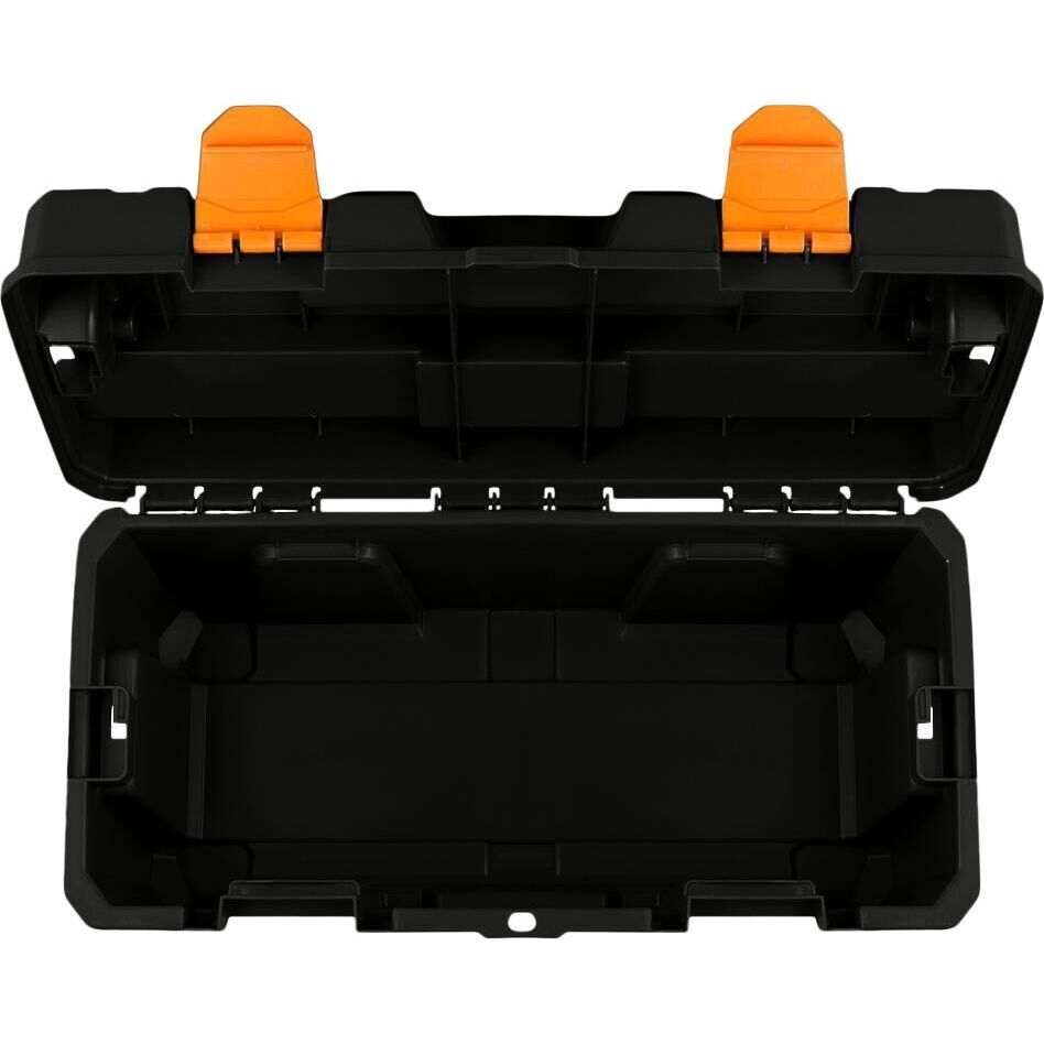 Ящик для инструментов помогает содержать в порядке и быстро находить необходимые инструменты и аксессуары. Идеален для использования дома, на даче, в гараже, мастерской, в автомобиле. Хранение инструментов в ящике защищает их от пыли и грязи. Ручка-замок – это отличное решение для мастеров, которым необходимо часто перемещаться в процессе выполнения работ. В поднятом состоянии ручка надёжно фиксирует крышку ящика, избавляя от необходимости закрывать защёлки. Длинная ручка равномерно распределяет вес ящика и обеспечивает комфорт при переноске. Крышка оснащена ложементом для распила материалов и линейкой для быстрого подбора метизов необходимого размера. Съёмный внутренний лоток с органайзером позволяет отделить инструменты и аксессуары первой необходимости от основного отсека. Возможность использования навесного замка защитит содержимое от свободного доступа, в том числе обеспечит безопасность детей.