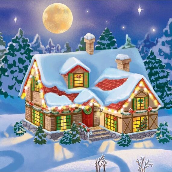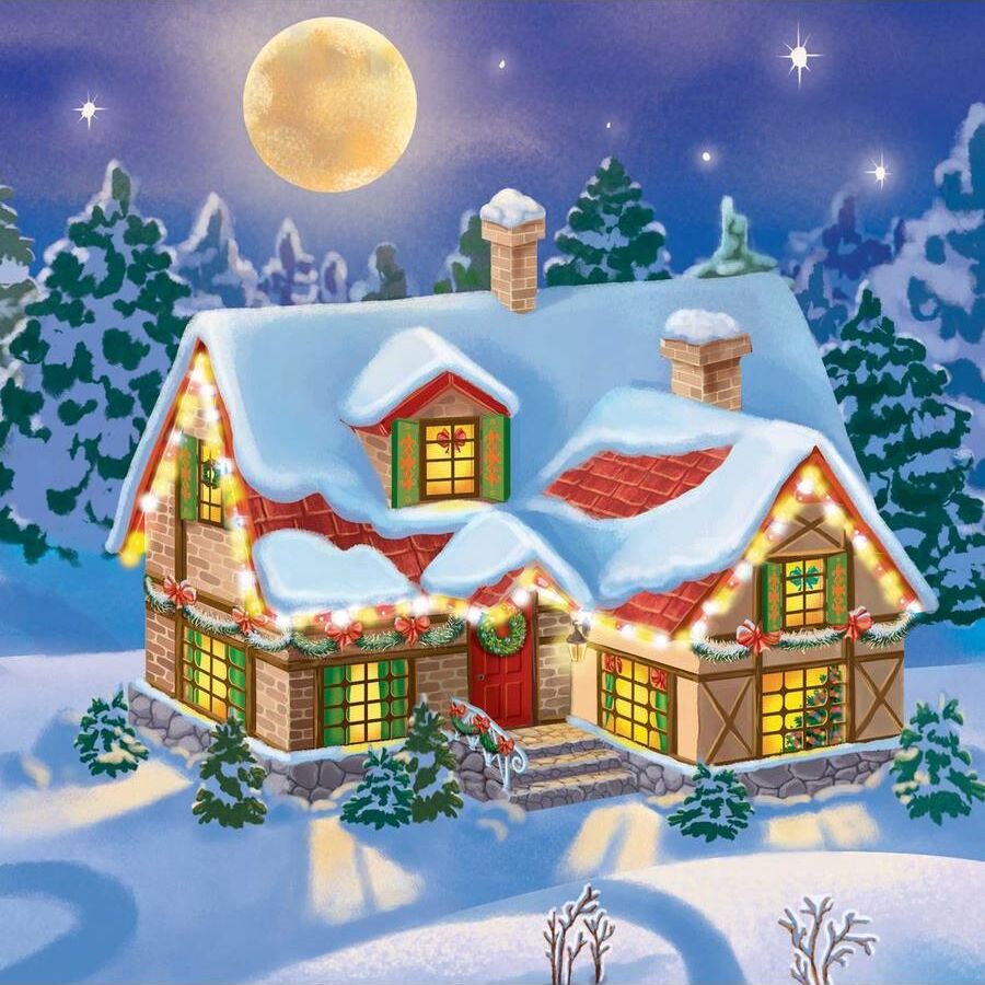 Набор РЫЖИЙ КОТ Алмаз.мозаика (блест.) 20х20 см, с подр., с полн.заполн. (29 цв.) Новогодний домик НД-5847 ПП-00208488