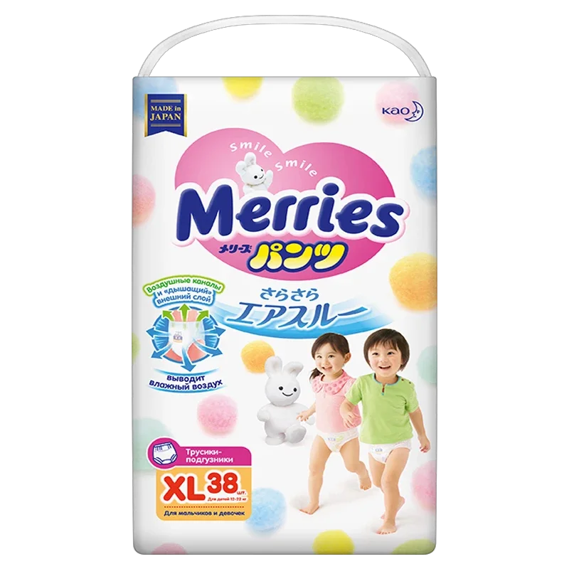 Merries Подгузники-трусики, размер XL (12-22 кг), 38 шт