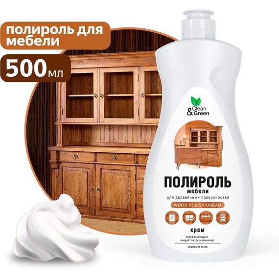 Средство чистящее CLEAN&GREEN CG8263 Полироль мебели "Wood polish cream" (для деревянных поверхностей) 500 мл
