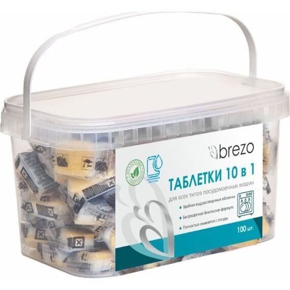 Таблетки для посудомоечной машины BREZO Таблетки ALL IN 1 безфосфатные для посудомоечной машины, 100 шт