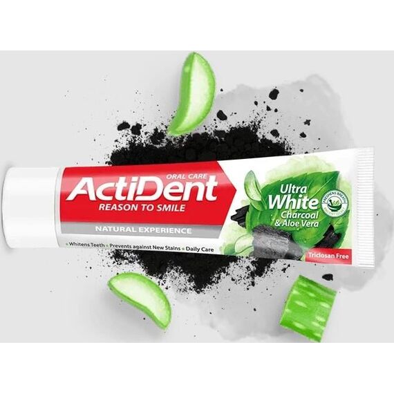 Зубная паста ACTIVE ACTIDENT Зубная паста отбеливающая Уголь и Алоэ вера Ultra White, без парабенов 100 г (512901006)