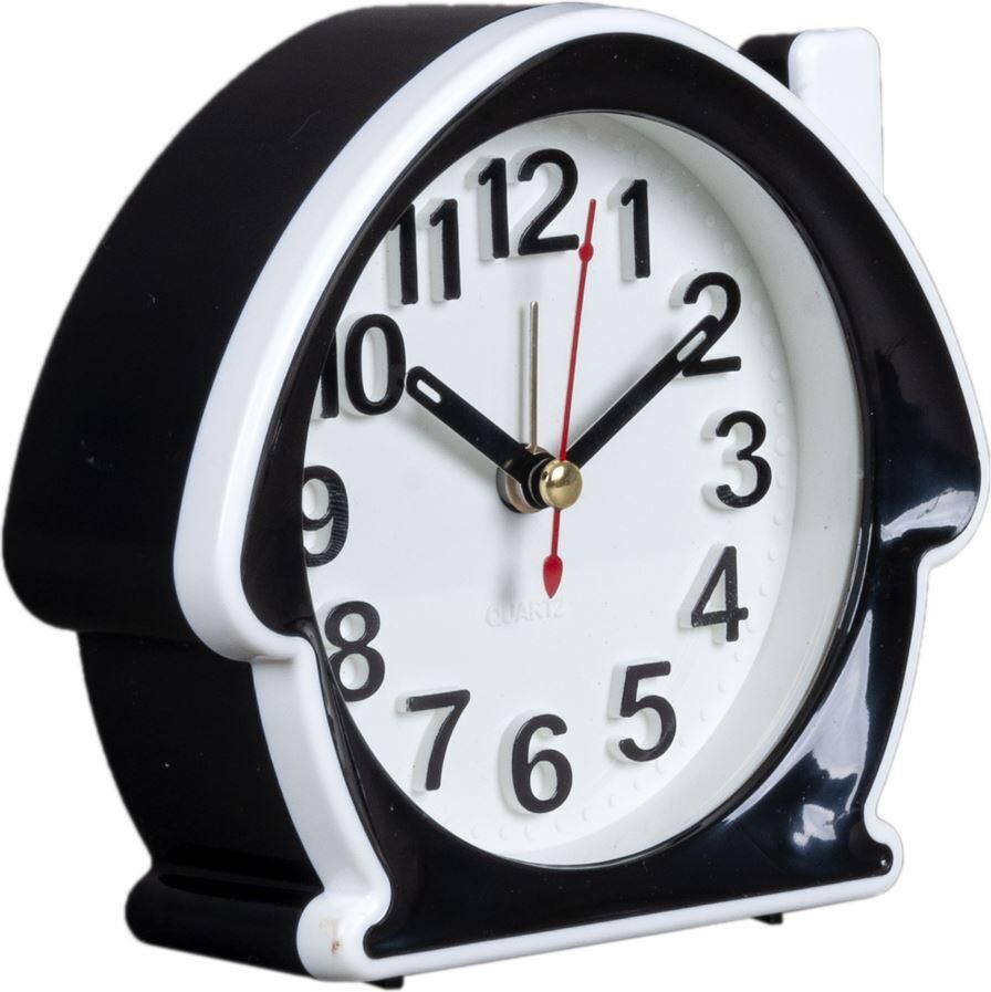 В6-008 (40) Будильник кварц, корпус черный с белым "Классика" С дискретным ходом Пластмасса, стекло, металл