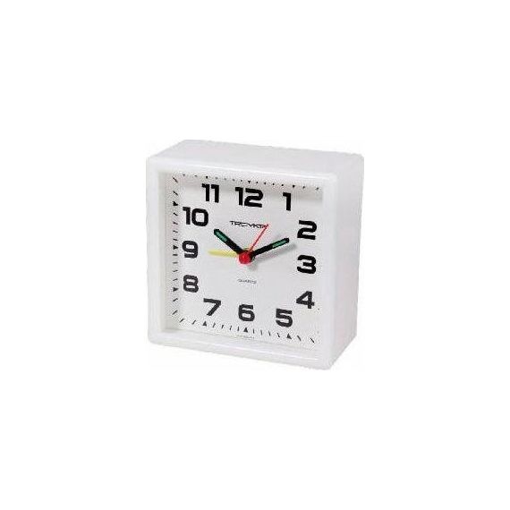 Категория: будильники, Тип механизма: кварцевый, Материал корпуса: пластик, Точный размер корпуса: 95х95х46 мм, Цвет корпуса: белый, Цвет циферблата: белый, Циферблат: стрелочный, Цифры: арабские, Ход: шаговый.