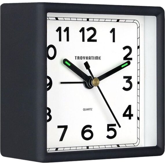 Настольные часы-будильник, пластиковый корпус, размер 95*95мм, кварцевый механизм с сигналом, цвет-черный матовый.