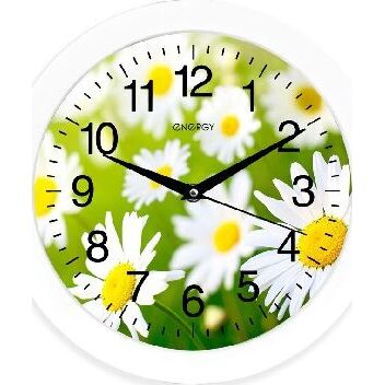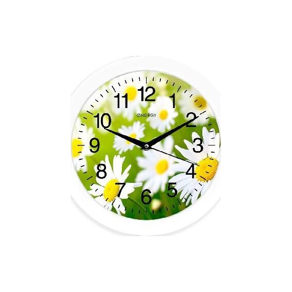 Часы настенные кварцевые ENERGY модель ЕС-98 ромашки. Питание от 1 батарейки типа АА (в комплект не входят). Напряжение: 1 х АА 1.5В. Размер 27,5*3,8 см. Корпус: пластик. Плавный ход.