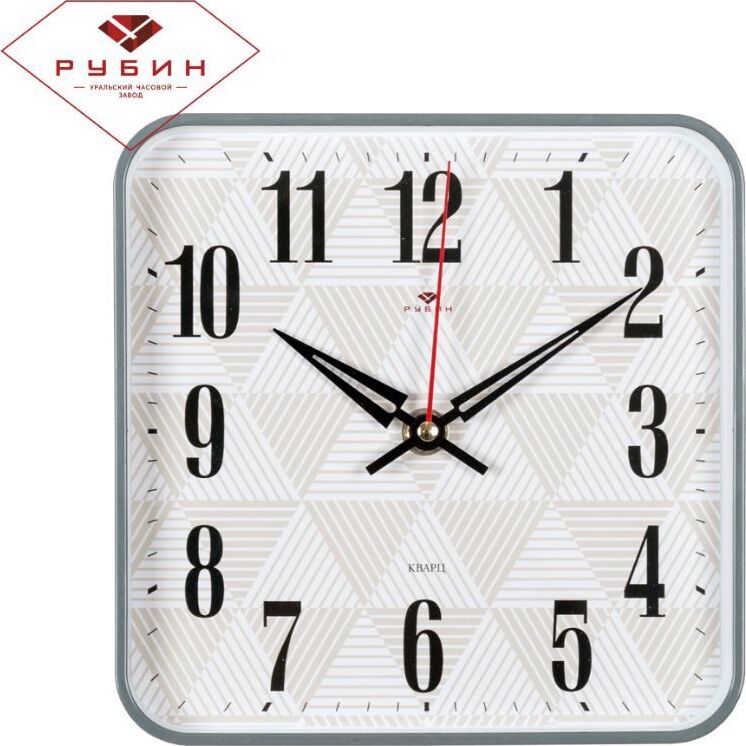 1918-109 (10) Часы настенные квадрат 19х19см, корпус серый "Геометрия" С плавным ходом/с дискретным ходом Пластмасса, стекло, металл