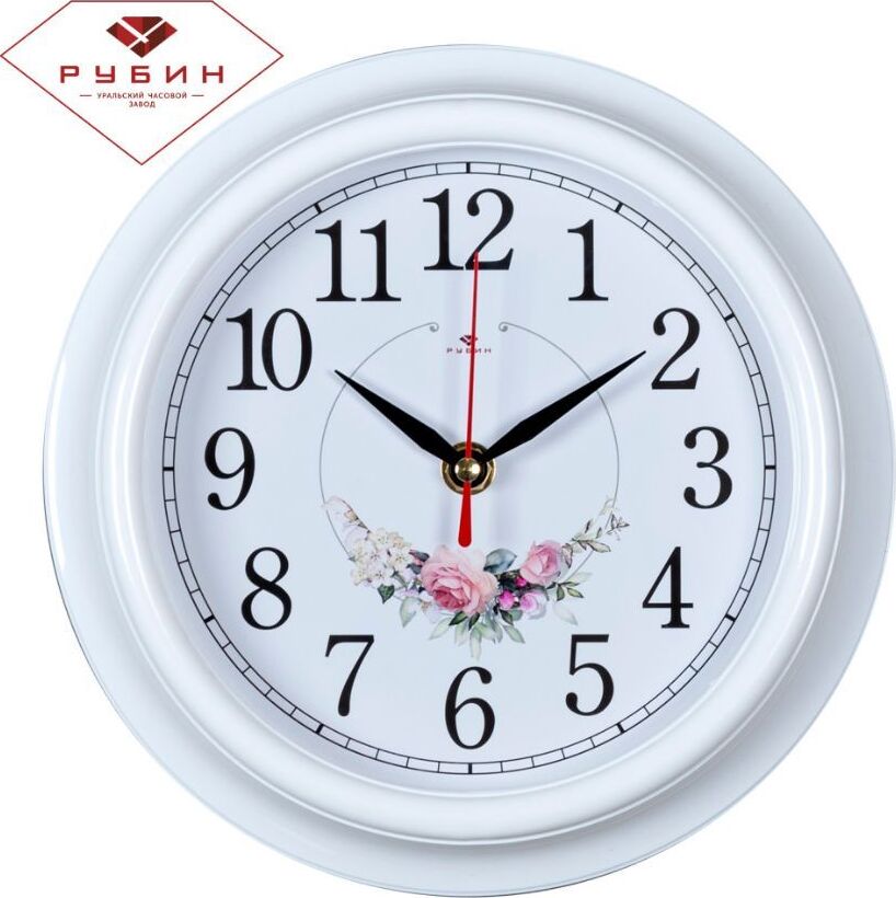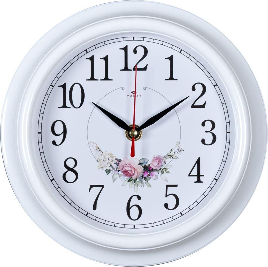 2121-139 (10) Часы настенные круг d=21см, корпус белый "Венок из роз"