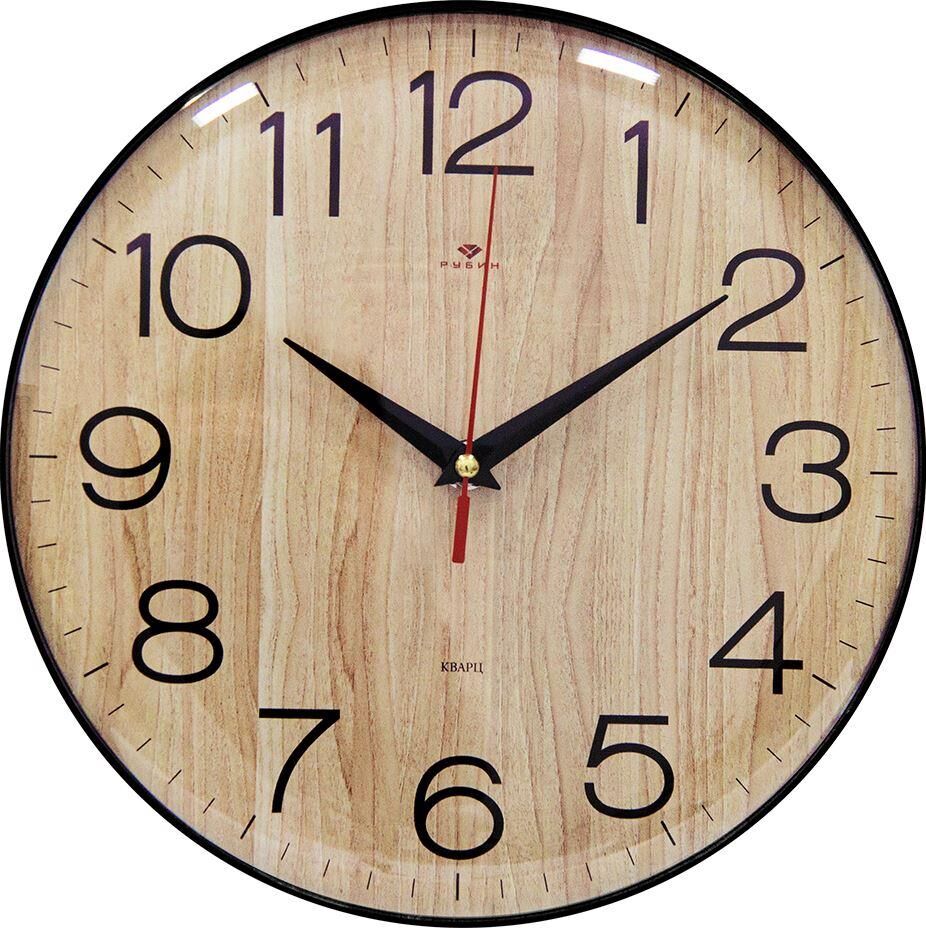 2526-003 (10) Часы настенные круг d=25см, основание черное "Текстура дерева"