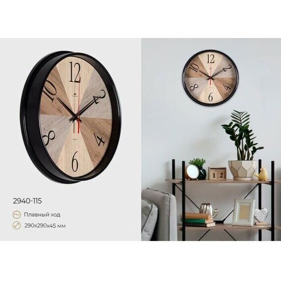 2940-115 (10) Часы настенные круг d=29см, корпус черный "Текстура дерева"