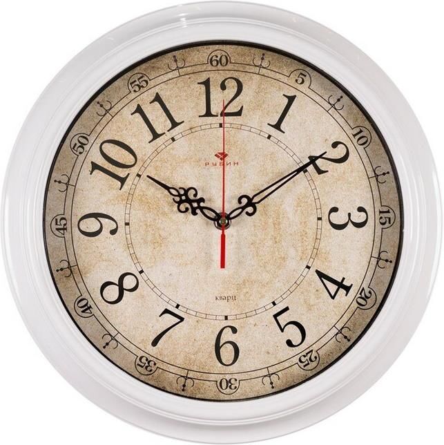 3527-122W (10) Часы настенные круг d=35см, корпус белый "Ретро классика"