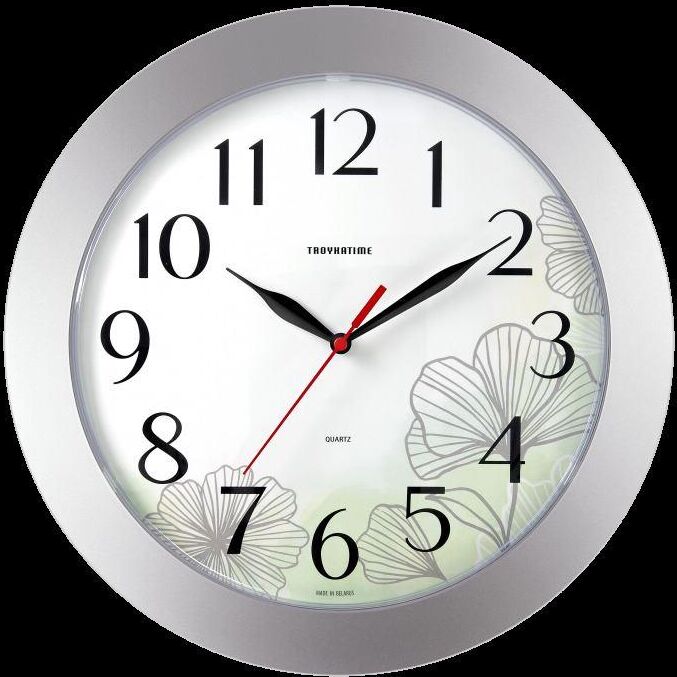 Часы настенные, модель 51570535, диаметр 305 мм, стекло пластиковое сферической формы, пластиковый ободок, цвет-серебро.