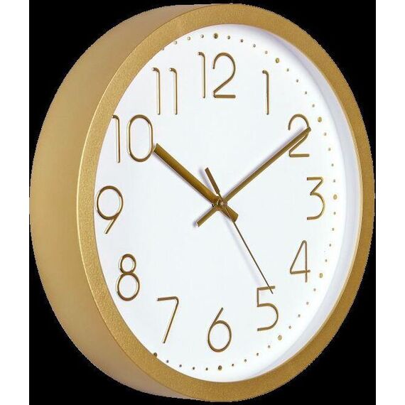 Часы настенные, модель 76768781, размер 305 Х 50 мм, материал пластик,стекло минеральное,обод широкий золотой матовый, рельефные цифры золото