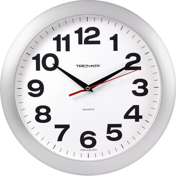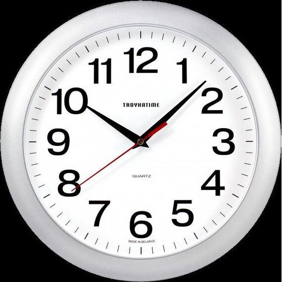 Часы настенные, модель 11170100, диаметр 290 мм, стекло пластиковое, пластиковый обод, цвет-серебро.