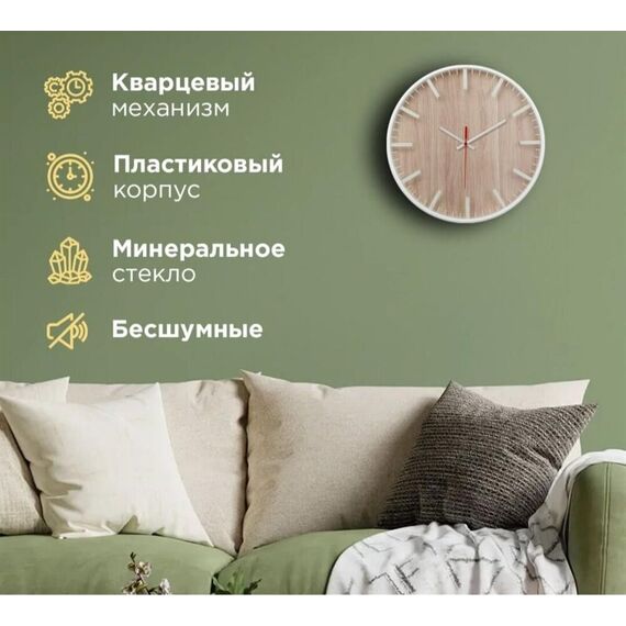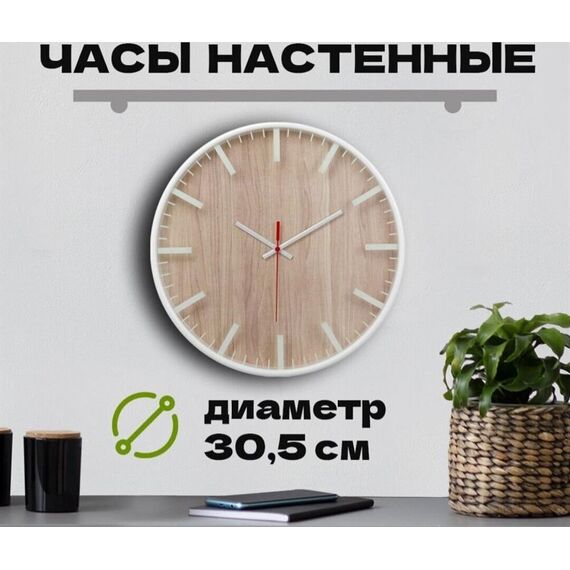 Часы настенные пластиковые, модель77, диаметр 305мм, стекло минеральное, кольцо пластик шириной 50 мм, печать по стеклу.