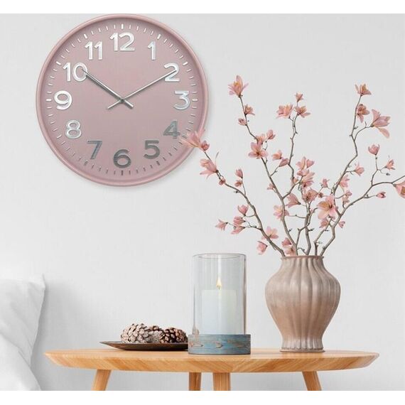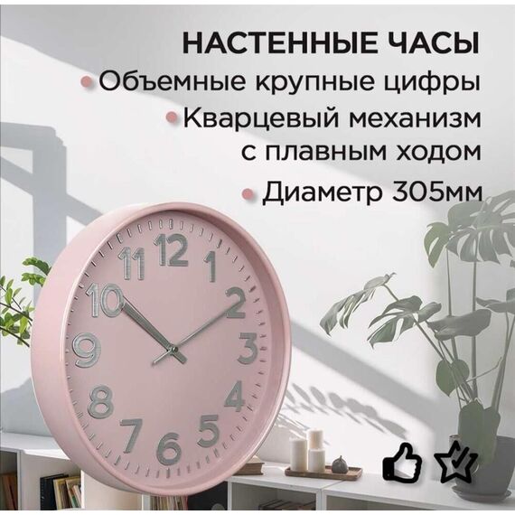 Часы настенные пластиковые, модель 78773784, размер 305*305*50 мм, стекло минеральное, пластиковый обод глянцевый, рельефные цифры с тиснением фольгой под серебро.