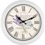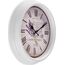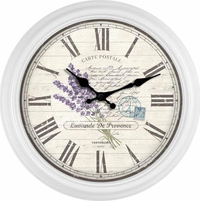 Форма — круг. Материал корпуса — пластик. Цвет корпуса — белый. Циферблат — римские цифры. Защита циферблата — силикатное стекло. Вывод времени — стрелочный. Механизм — кварцевый с плавным ходом. Батарейка АА (в комплект не входит). Гарантийный срок — 12 мес.