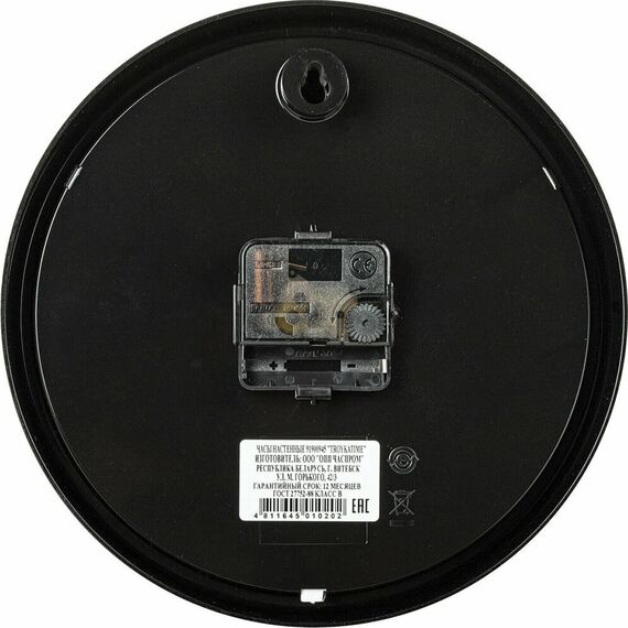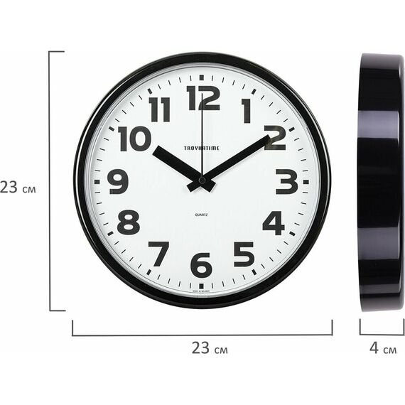 Часы настенные пластиковые, модель 91900945, диаметр 225 мм, стекло пластиковое, пластиковый обод, цвет-чёрный.