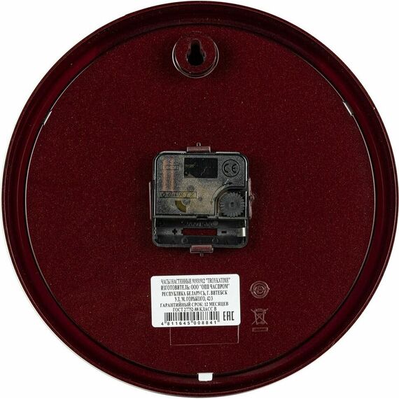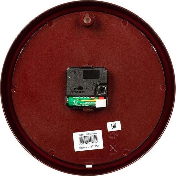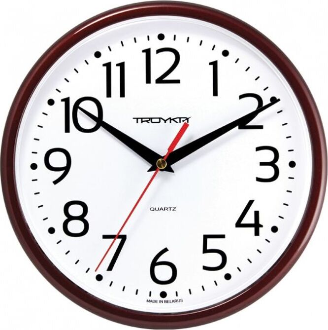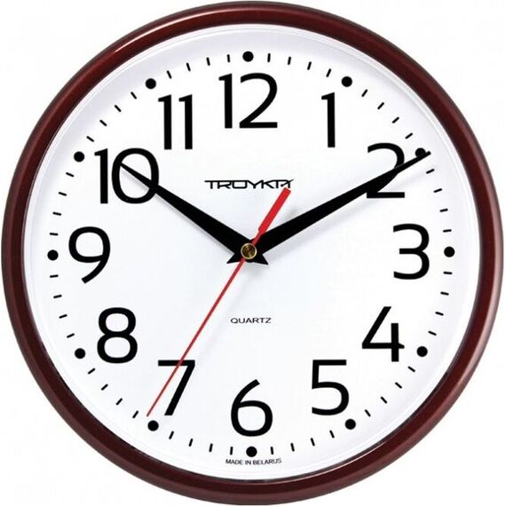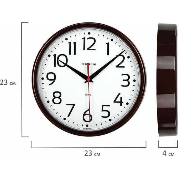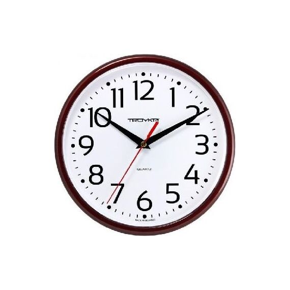 Категория: настенные, Тип механизма: кварцевый, Материал корпуса: пластик, Точный размер корпуса: 225х225х40 мм, Форма корпуса: круглые, Цвет корпуса: коричневый, Цвет циферблата: белый, Циферблат: стрелочный, Цифры: арабские, Ход: плавный.
