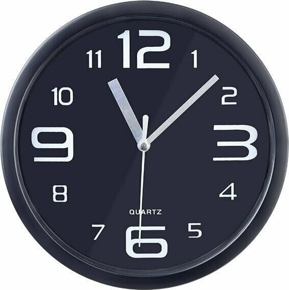 Часы PERFEO (PF_C3042) PF-WC-001 (С1), круглые д. 20 см, чёрный корпус / чёрный циферблат