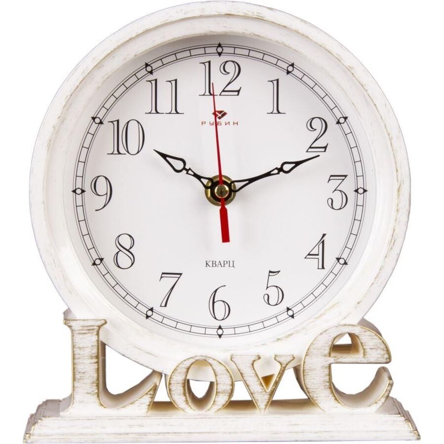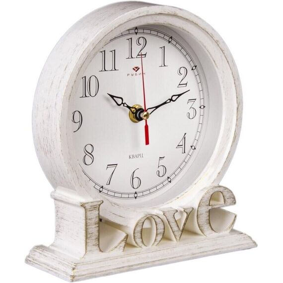 1916-002 (10) Часы настольные 19х17 см, корпус белый с золотом "Классика"