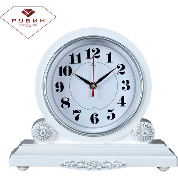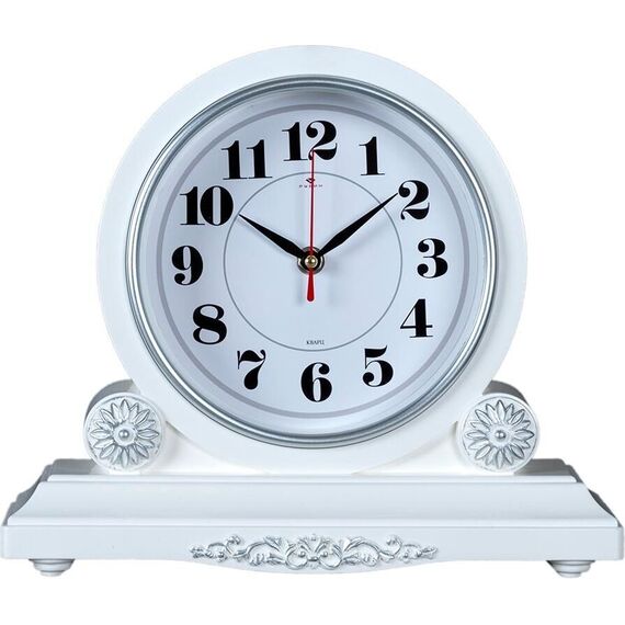 3026-004 (10) Часы настольные 30х26 см, корпус белый с серебром "Классика"