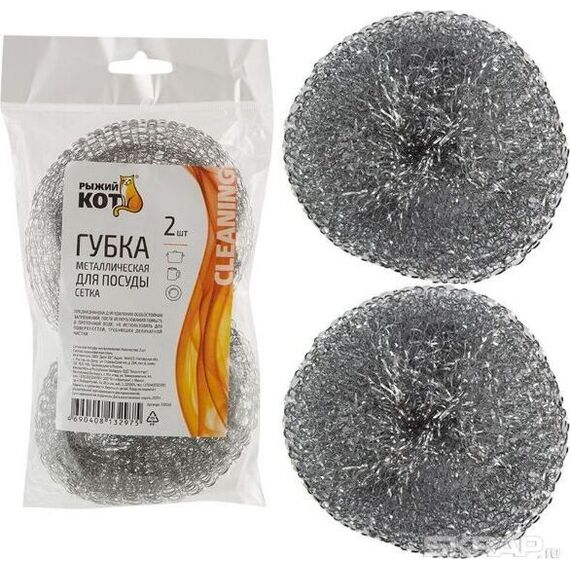 Губка д/посуды РЫЖИЙ КОТ Губка металлическая для посуды, сетка, вес 15 гр., 2 шт. (310569)