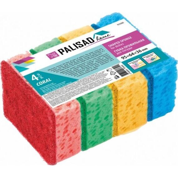 Губка PALISAD Губки для посуды CORAL, 95X64X36 мм, 4 шт., 923585