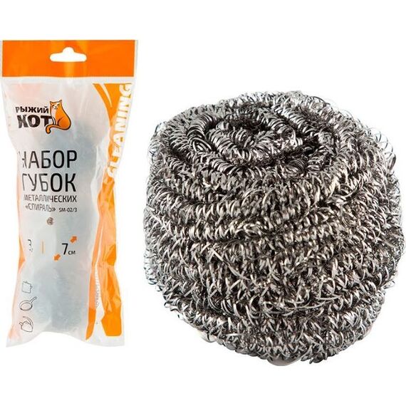 Набор губок металлических РЫЖИЙ КОТ SM-02/3, Спираль, пакет 3 шт.