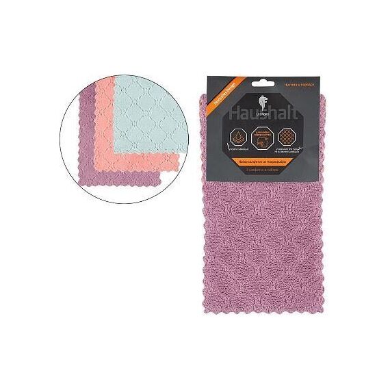 В упаковке: 3 шт. Уникальная структура Размер: 25х15см Состав: микрофибра (80% полиэстер/20% полиамид) Плотность:200 гp/м² Цвет: бирюзовый/розовый/серый/сиреневый Упаковка: хедер с подвесом
