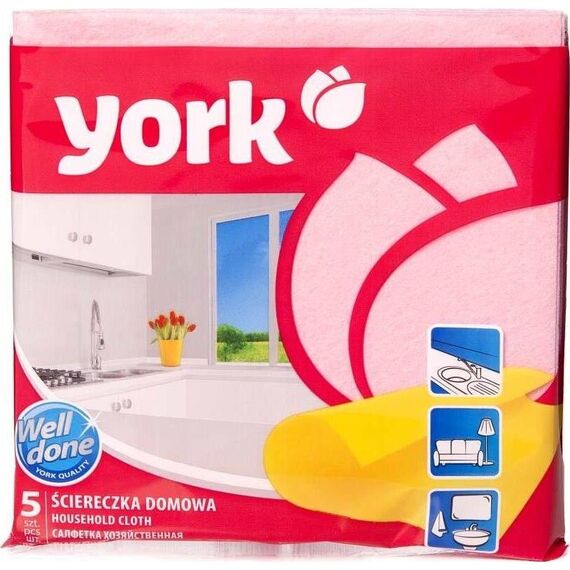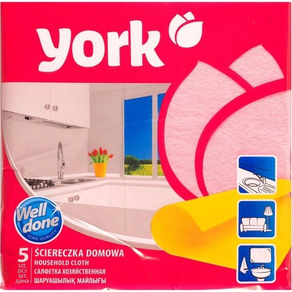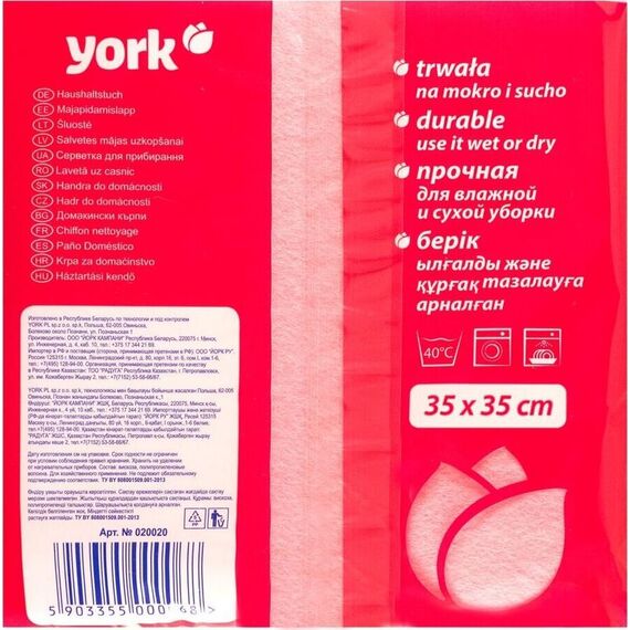 Салфетка универсальная "YORK" вискоза, 35*35см, 5 шт/уп. Салфетка с оптимальным соотношением качества и количества для домашнего применения. Универсальное применение: для сухой и влажной уборки. Незаменима при ежедневной уборке на кухне. Состав: вискоза, полиэстер, полипропилен. Размеры: 35*35 см. Кол-во: 5 шт в упаковке