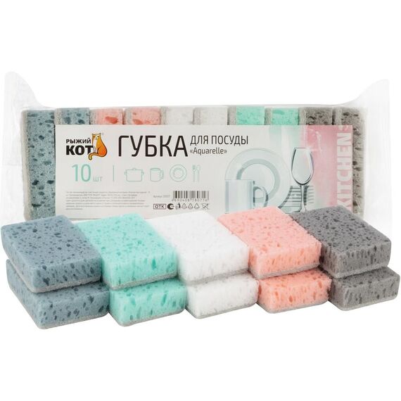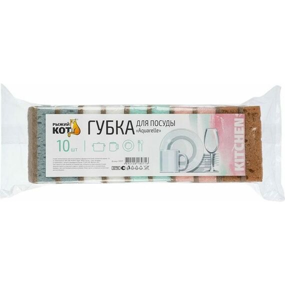 РЫЖИЙ КОТ Губка д/посуды Aquarelle (10шт) (93*65*27мм) (310577)