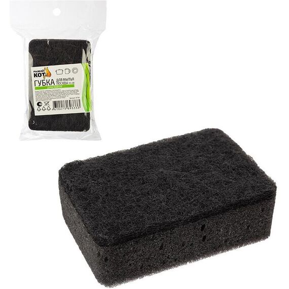 РЫЖИЙ КОТ Губка для мытья посуды двухслойная прямоугольная KS-08 (черный)
