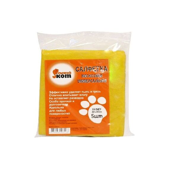 Салфетка РЫЖИЙ КОТ вискозная универсальная 30*30см (5шт)