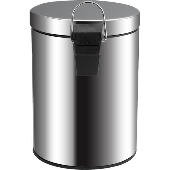 Круглое хромированное ведро для хранения мусора с педалью и откидной крышкой, прекрасно подойдет для ванной комнаты, туалета или кухни и офиса. Ведро оснащено пластиковым гигиеническим контейнером с металлической ручкой для переноса и механизмом поднятия крышки, при помощи нажатия на педаль. Объём ведра 5 литров. Отличное решение для утилизации мелкого бытового мусора. Наличие крышки обеспечивает защиту от неприятных запахов и распространения бактерий, а педальная система открывания позволяет не прикасаться к баку руками. Благодаря современному дизайну ведро впишется в интерьер любой кухни и ванной комнаты. Преимущества ведра для мусора с педалью: удобно устанавливается и перемещается на любое место; изготовлено из устойчивой к коррозии нержавеющей стали с хромированным покрытием; пользоваться изделием удобно и гигиенично благодаря педали в нижней части корпуса. Нескользящая пластиковая основа ведра предотвращает повреждение пола. Габаритные размеры: высота 280 мм, диаметр 205 мм.